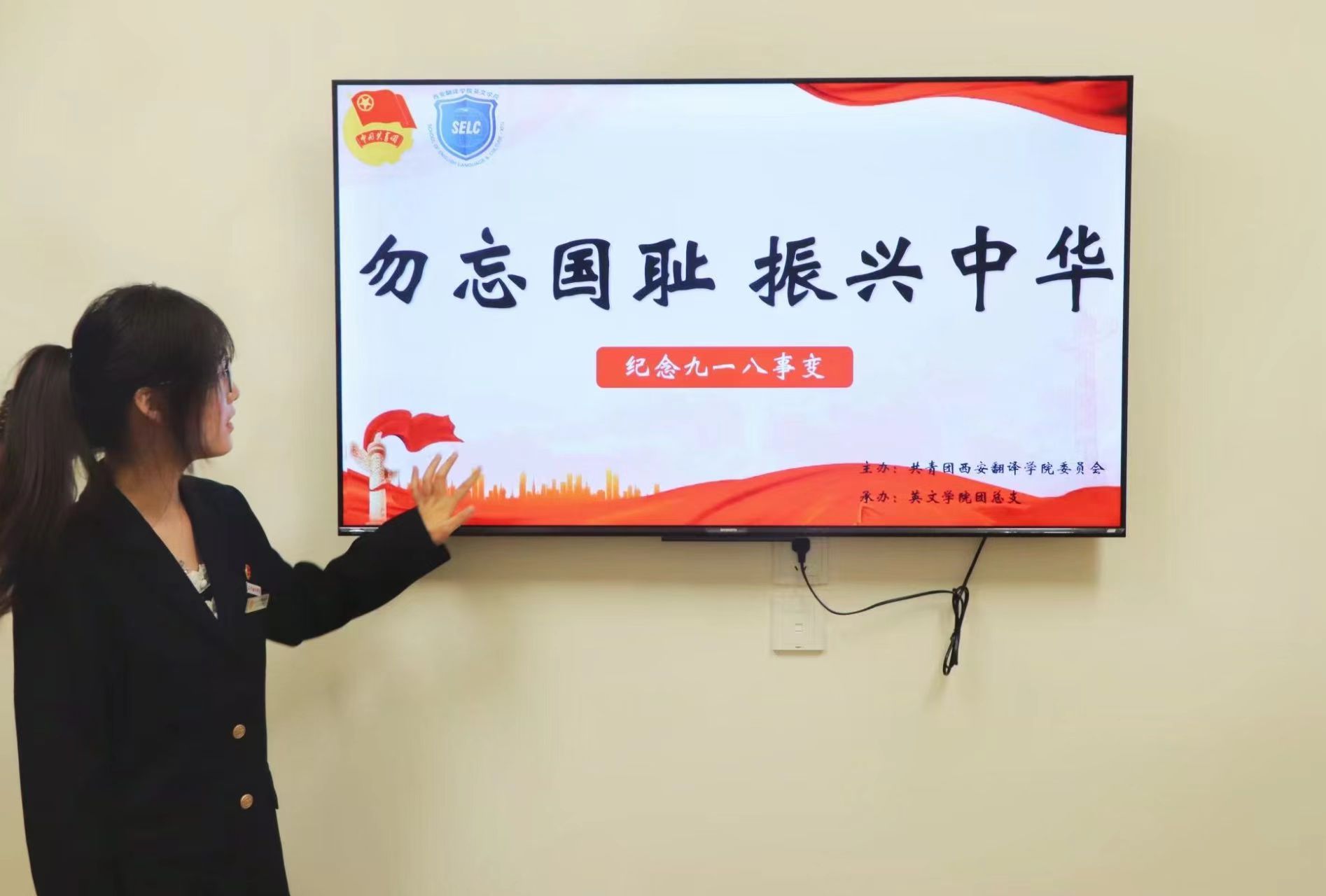 9月18日18时,英文学院团总支在西十公寓开展“勿忘国耻 振兴中华”纪念“九一八事变”主题学习活动,践行“铭记历史是青年必修课”的要求,深化一站式学生社区思政教育。 活动由王悦琪同学主讲,从事变背景、经过、日军罪行与各方反应、历史影响四方面,带同学们回顾沉重历史。学子们表示,将深刻感悟“落后就要挨打”的历史箴言,将以历史记忆为动力,以青春担当护国,为民族复兴贡献力量。