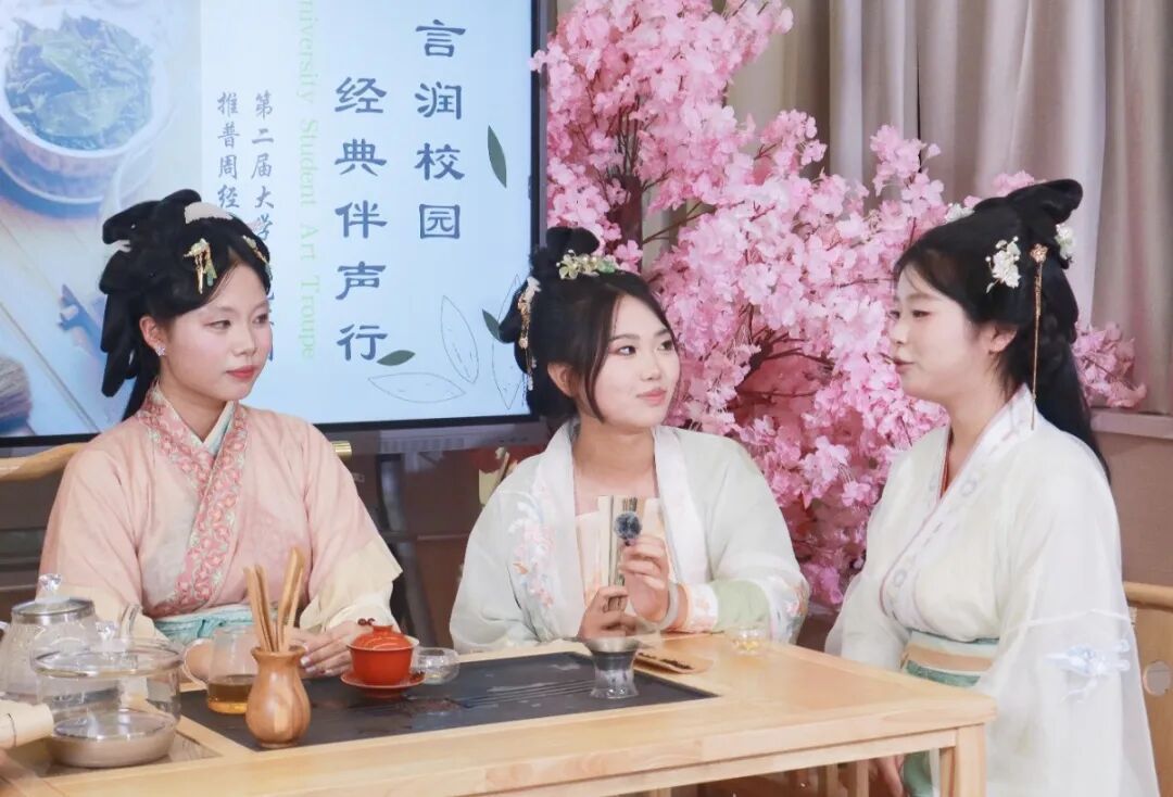 为搭建沉浸式普通话交流平台,提升师生经典诵读口语能力、传承经典文化,营造校园文化氛围。9月18日,由西安翻译学院教务处、共青团西安翻译学院委员会主办,大学生艺术团承办,雏凤诗社、主持达人队、书画协会、国学研习会、桃李文学通讯社协办的“雅言润校园,经典伴声行”第二届大学生艺术团推普周经典诵读会活动于社团楼二楼顺利开展。