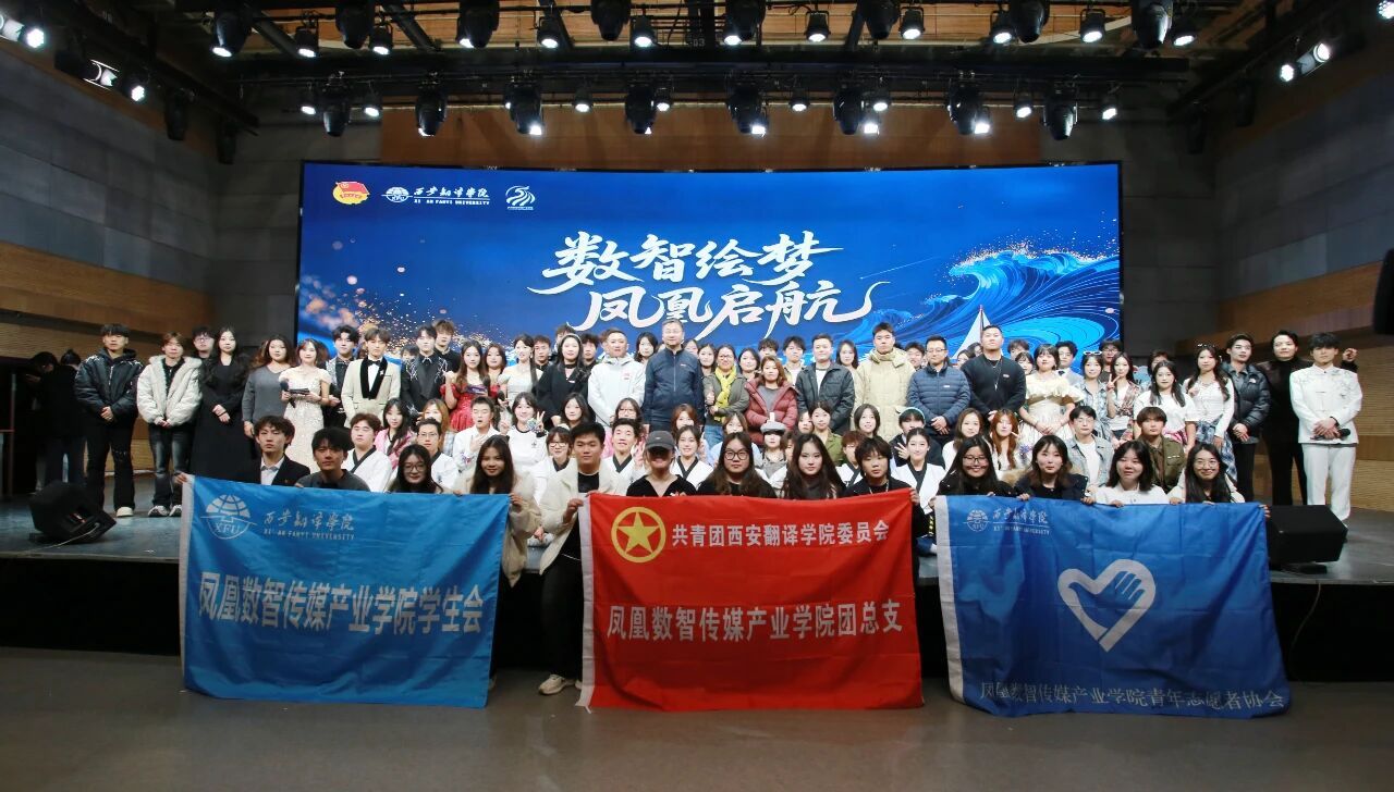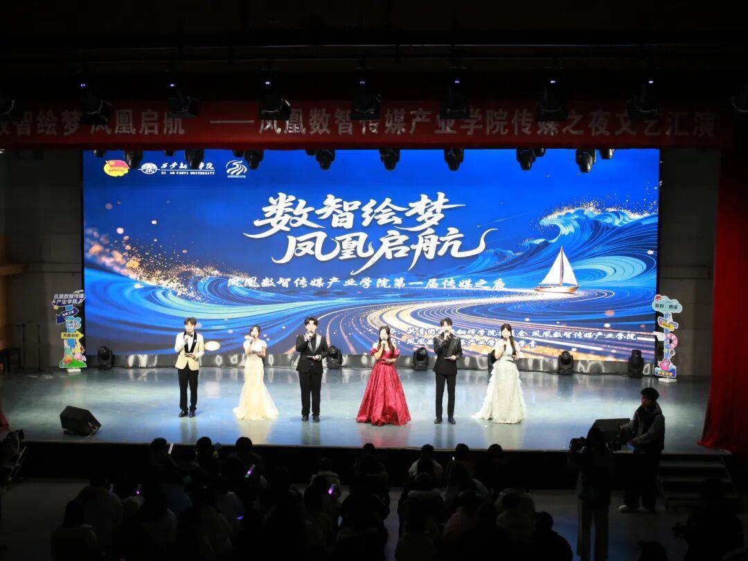 星光璀璨映校园,数智逐梦启新程。为展现凤凰数智传媒产业学院学子青春风采与专业素养,凝聚师生力量,传递传媒人的初心与担当,12月8日,由共青团西安翻译学院委员会、凤凰数智传媒产业学院主办,学院团学青承办的“数智绘梦,凤凰启航”凤凰数智传媒产业学院第一届传媒之夜于一号综合楼演播大厅隆重举行。