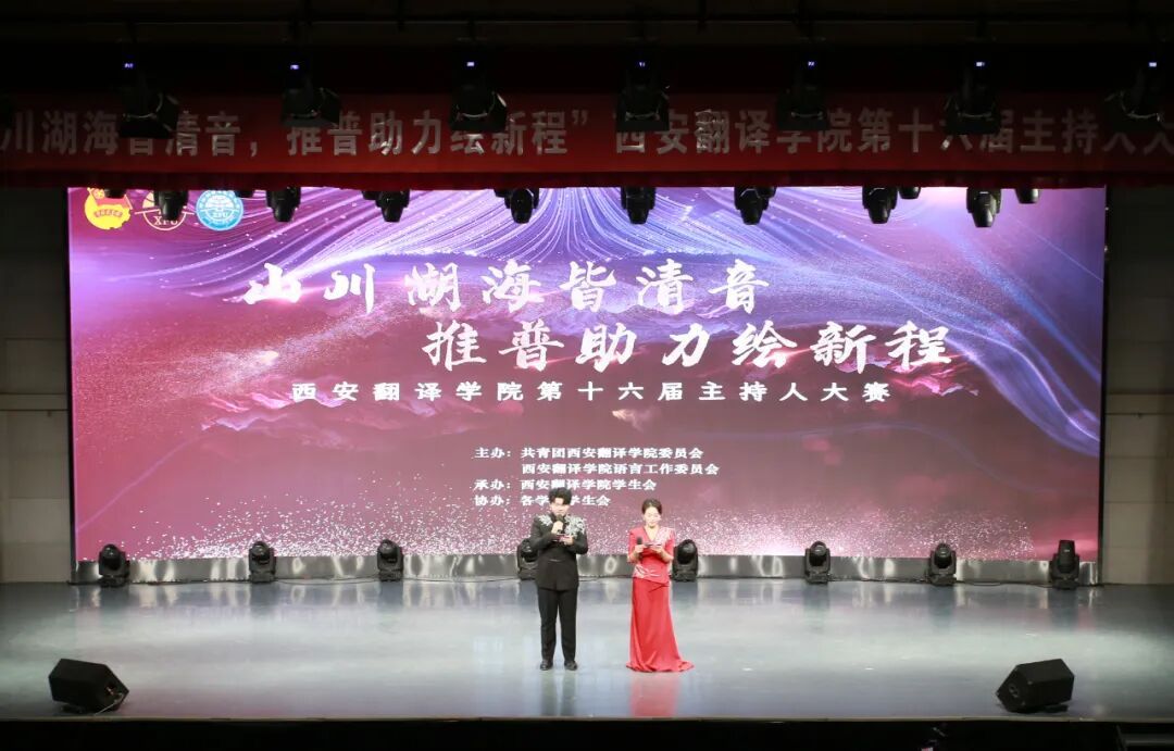11月20日,由共青团西安翻译学院委员会、西安翻译学院语言工作委员会主办,校学生会承办,各学院学生会协办的以“山川湖海皆清音,推普助力绘新程”为主题的第十六届主持人大赛决赛在一号综合楼演播大厅顺利举行。