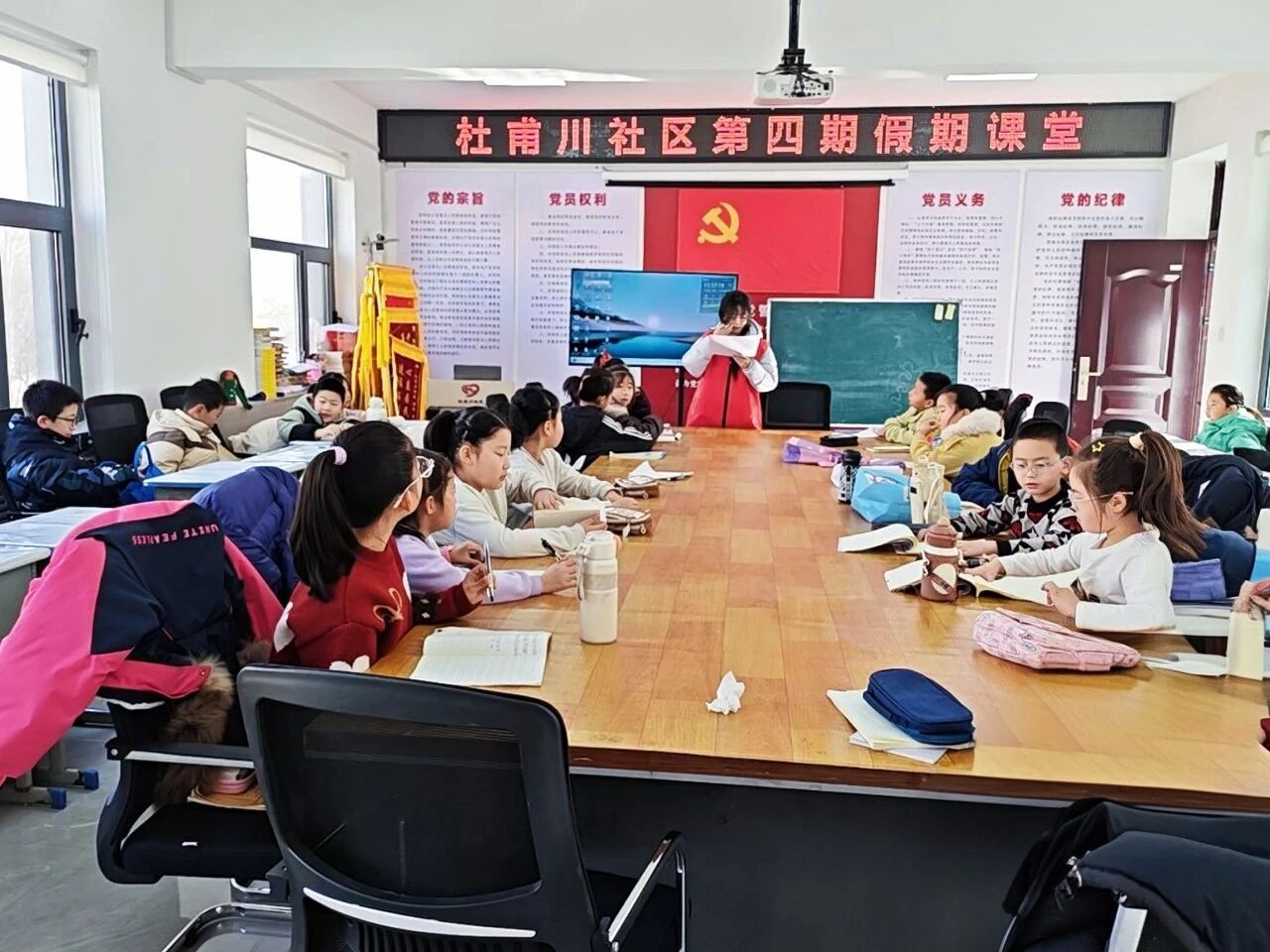 在杜甫川社区的假期课堂里,我以助教的身份陪伴孩子们学习,也让我体会到了服务家乡的温暖。看着孩子们专注的眼神、认真书写的模样,我仿佛看到了小时候的自己。我帮他们解答难题,和他们一起朗读课文,在互动中感受到了童真与活力。社区的课堂不仅是知识的传递,更是红色精神的延续——我们在课堂上讲述延安故事,让孩子们从小了解家乡的历史,在他们心中种下爱国爱乡的种子。